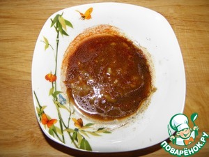 Маринад: мед, горчицу, лимонный фреш, растительное масло, соевый соус, все перемешать, добавить измельченный чеснок и специи по вкусу.