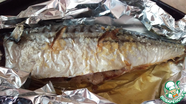 Фольгу отрываем в 3 раза длинней вашей рыбы и складываем пополам матовой частью внутрь, укладываем на фольгу рыбу, солим со всех сторон. Можно сбрызнуть лимонным соком.