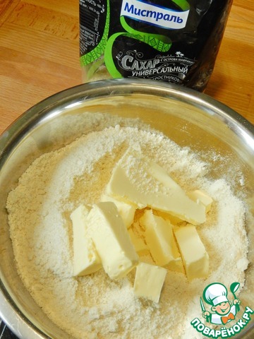 Добавим сливочное масло и как следует перетрем. Затем добавляем яйцо и перемешаем до получения однородного, мягкого не липнущего к рукам теста. Завернем в целлофан и уберем в холодильник минут на 30.