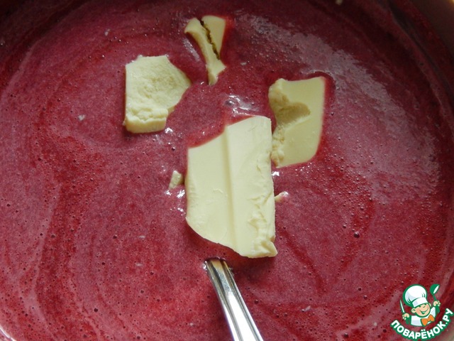 Пока готовая основа остывает займемся начинкой. Ягоды измельчаем в блендере, затем протираем через сито. Получилось примерно 400-450 мл. Ставим на плиту доводим до кипения но не кипятим.