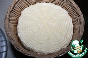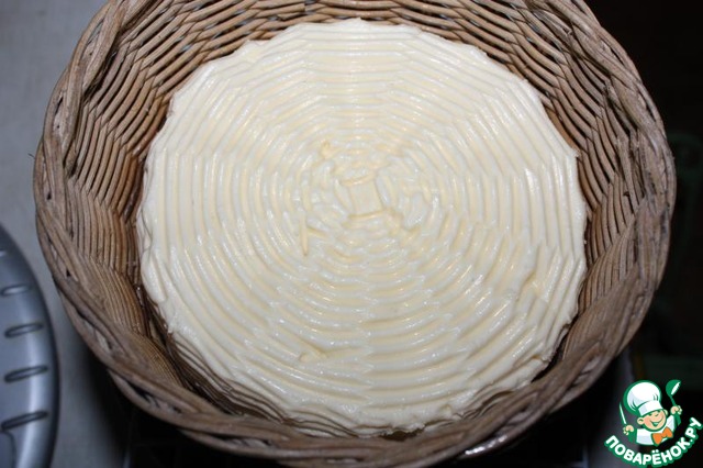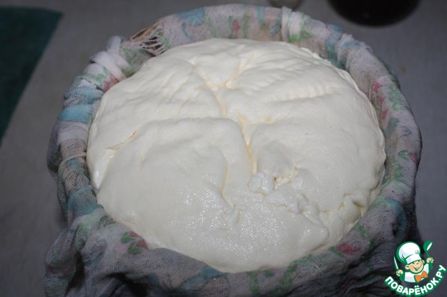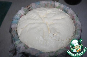 Выложить сырную массу в форму, выстеленную тканью. Лучше всего в качестве формы использовать корзинку. Тут я немного отступил от оригинального рецепта, чтобы сыр был классической толщины, надо было разложить по двум корзинкам, но я все впихнул в одну.