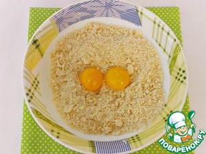 Ввести 2 желтка (белки не понадобятся) и руками вымесить тесто. Скатать его в шар (если тесто крошится - добавить около 1 ст. л. холодной воды).