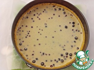 Вылить заливку на ягоду. Вилкой можно чуть-чуть придавить бортики вниз. Выпекать в разогретой (200С) духовке, 25-30 минут. Внимательно следите, чтобы бортики не подгорели. Если начнут подгорать, то нужно уменьшить температуру или переставить на нижний уровень. Готовый пирог остудить.