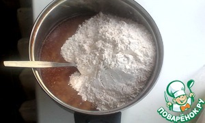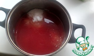 • В кастрюлю или миску выливаем сок, масло, добавляем соду и сахар.