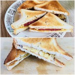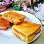 два ломтика хлеба для тостов смазать сливочным маслом с одной стороны (наружная сторона - где будем обжаривать), а с другой стороны (внутренняя) сгущенным молоком. Выкладываем на один кусочек хлеба порезанный кружочками банан, посыпаем корицей, имбирем и твердым сыром, накрываем другим ломтиком хлеба. -