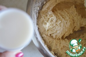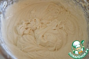 Вводим в масляную смесь яйца по одному, каждый раз хорошо взбивая массу до однородности.