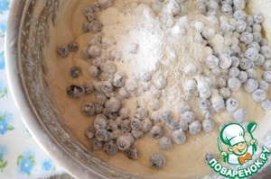 Голубику моем, сушим на бумажном полотенце и посыпаем 2 ст. л. муки. Хорошо перемешиваем.