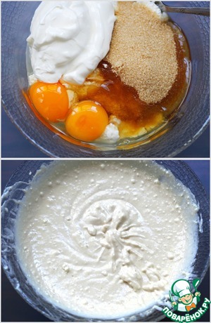 Хорошенько растереть в большой миске творог, сметану, сахар и яйца (можно даже слегка взбить блендером). Сахара для этого варианта лазаньи не жалейте, т. к. ежевика - очень-очень кислая ягода.