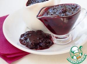 Пока запекается лазанья, можно приготовить для подачи ежевичный соус. Он готовится легко и очень быстро. Поставить на огонь посуду с ежевикой и через 1-2 минуты добавить сахар. Хорошенько мешать, пока ягода не пустит сок, для густоты можно добавить крахмал.