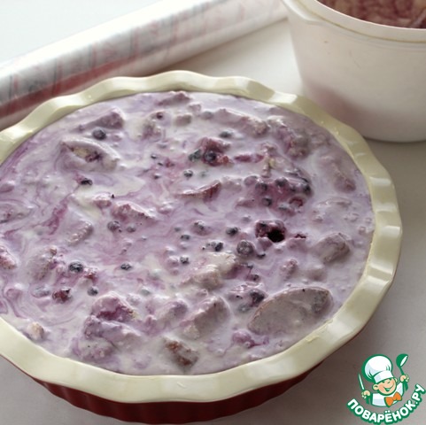 Форму смазать маслом, выложить в неё смесь с черникой, накрыть форму пищевой пленкой и убрать в холодильник на час. Можно убрать на ночь.
