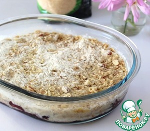 Сверху на ягоды равномерно распределить мучную смесь