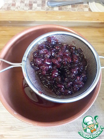 Начинку откинуть на сито и дать стечь сиропу. Сироп можно использовать для приготовления морса. В начинку нужны только ягоды