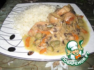 Любителям экзотики, я думаю, понравится. Просто обожаю это блюдо. Попробовав раз в ресторане, решила приготовить сама. Получилось гораздо вкуснее. В оригинале вкус должен быть острым, для этого используется зеленый острый перчик, но так как мое сокровище (он же муж) не ест острое, перчик отменяется, но поверьте, так же вкусно!