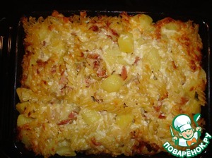 Я с детства обожаю сочетание макарон с картошкой (мама готовила нечто подобное тому, что в рецепте, только без запекания и сырной заливки (тушила со сметаной и томатом) и вместо бекона прекрасно шли сосиски или варёная колбаса. Тому уж больше 40 лет назад