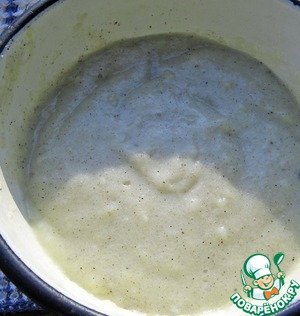 Когда закваска будет готова, начинаем замешивать тесто. Дрожжи можно предварительно растворить в теплой воде. Используются свежие прессованные дрожжи.