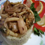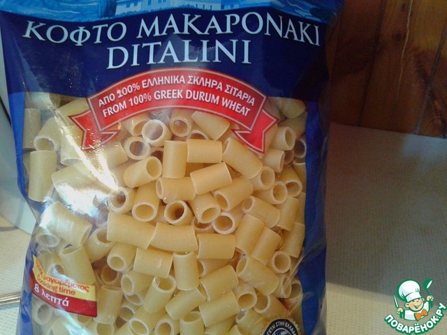 Блюдо Средиземноморской кухни, один из основных способов приготовления осьминога. Для блюда используются короткие макарончики- итальянские диталини или греческие кофто макаронаки. Осьминог, даже достаточно крупный при определенном способе обработки становится мягким и сочным.