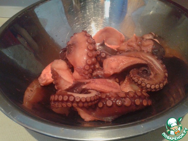 И нарезанного на более мелкие кусочки осьминога.
