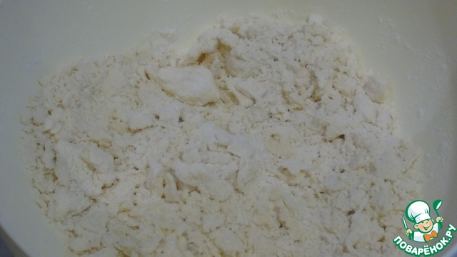 Муку с солью и маслом нарезанным на кусочки смешать в крошку.