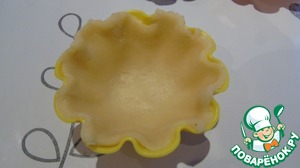 Берем кусочек теста и руками разглаживаем по формочке. Выходит примерно 10-12 шт.