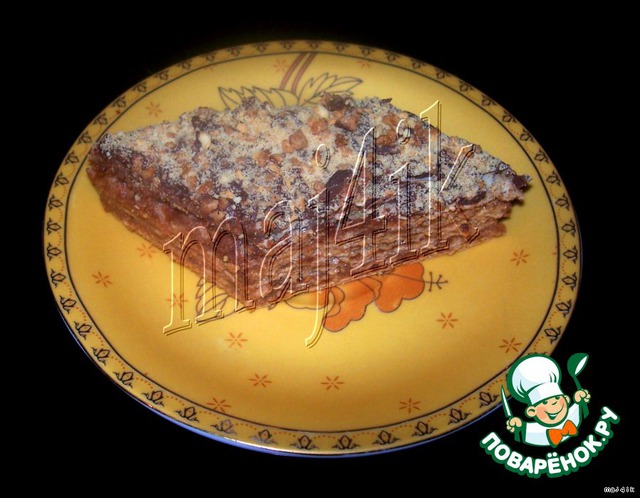 Намазать получившейся массой коржи и сложить их друг на друга.