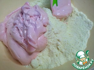 Затем соединила муку с белками аккуратно перемешала