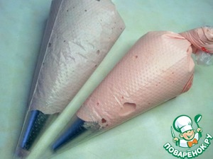 Полученную массу положила в два кондитерских мешка с круглой насадкой.