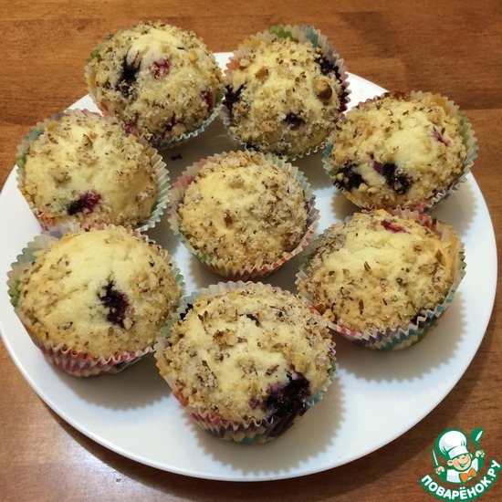 Рецепт «Черносмородиновые маффины с ореховой посыпкой»: