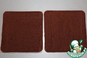 Начинаем собирать пирожные: бисквит разрезаем вдоль на две части.