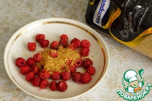 Подготовим необходимые продукты. Сахар тут нужен именно тростниковый. Вместо малины можно использовать любую другую сладкую ягоду.