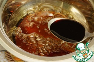 К карамели добавить бальзамический уксус, дать покипеть еще 4-5 минут.