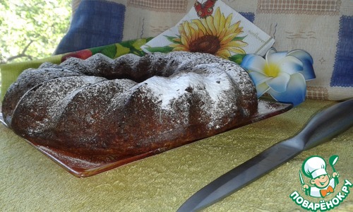 Добавить соду и постепенно всыпать муку. Получится тесто по консистенции напоминающее густую сметану. Выложить в форму и выпекать около часа при 175 градусах