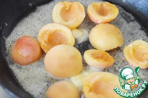 3. Выложить половинки абрикосов. Карамелизировать несколько минут и снять с огня.