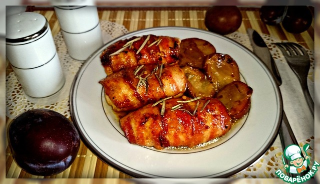 Рецепт «Куриные рулетики в беконе под сливовым соусом»: