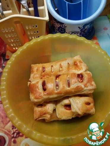 Такие сосиски мы часто делаем на выходных и никогда не дожидаемся пока они остынут))) Пусть составляющие не самые полезные, но зато веселей, чем обычные бутерброды и готовить быстро)) Не судите строго, это мой первый рецепт на сайте)))