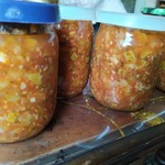 Когда я делала еще одну партию таких кабачков, то решила добавить еще и морковки натертой. Добавила, как говорят,"на глаз". Примерно 1 кг. Все остальное по-рецепту.