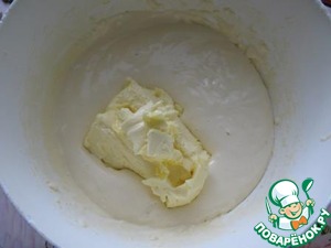 Добавить в тесто растопленный шоколад и небрежно перемешать, чтобы получились разводы.