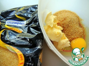 • Смешиваем размягчённое сливочное масло, 1 яйцо и коричневый сахар от Мистраль.