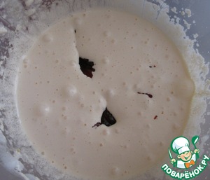 Желтки с сахаром взбить миксером до светлого кремового цвета.