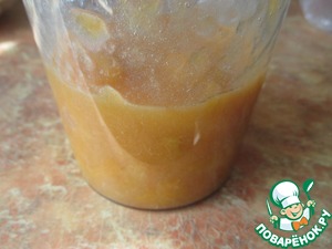 Добавить сахарную пудру. Взбить миксером с обычными насадками до состоянию пюре с крупными кусочками. У меня получилось 300 мл пюре.