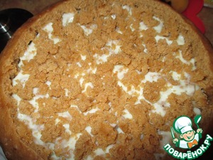 Теперь декор)Отложенные высушенные крошки надо растолочь мелко, любым удобным способом. Я положила их в пакетик и прошлась по ним многократно скалкой. Теперь смазываем бока торта тонким слоем варёной сгущёнки и обсыпаем этой самой крошкой. Всё! Торт готов. Теперь убираем его ( лучше на ночь) в холодильник, что бы он настоялся. А на следующий день можно уже его и отведать!