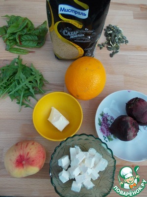 Ингредиенты для «Салат со свеклой, персиком и апельсиновой заправкой»: