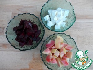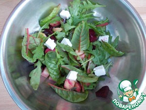 • Смешать с нарезанными свеклой, персиком и фетаки.