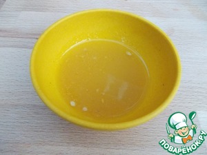 • Из апельсина выжать сок, добавить сахар и сливочное масло, поставить на огонь, варить, помешивая, при сильном кипении, пока соус не выпарится наполовину. Остудить. Полученным соусом заправить салат.