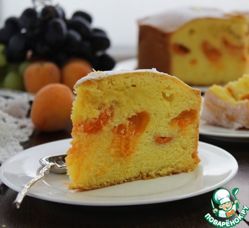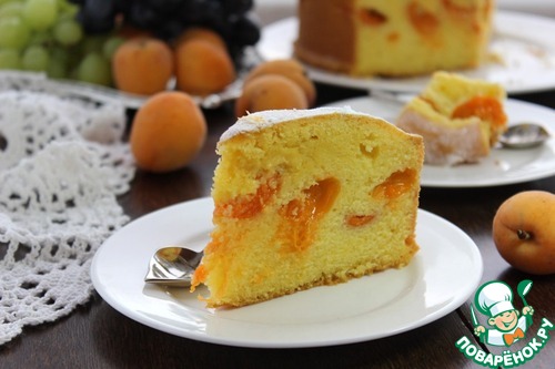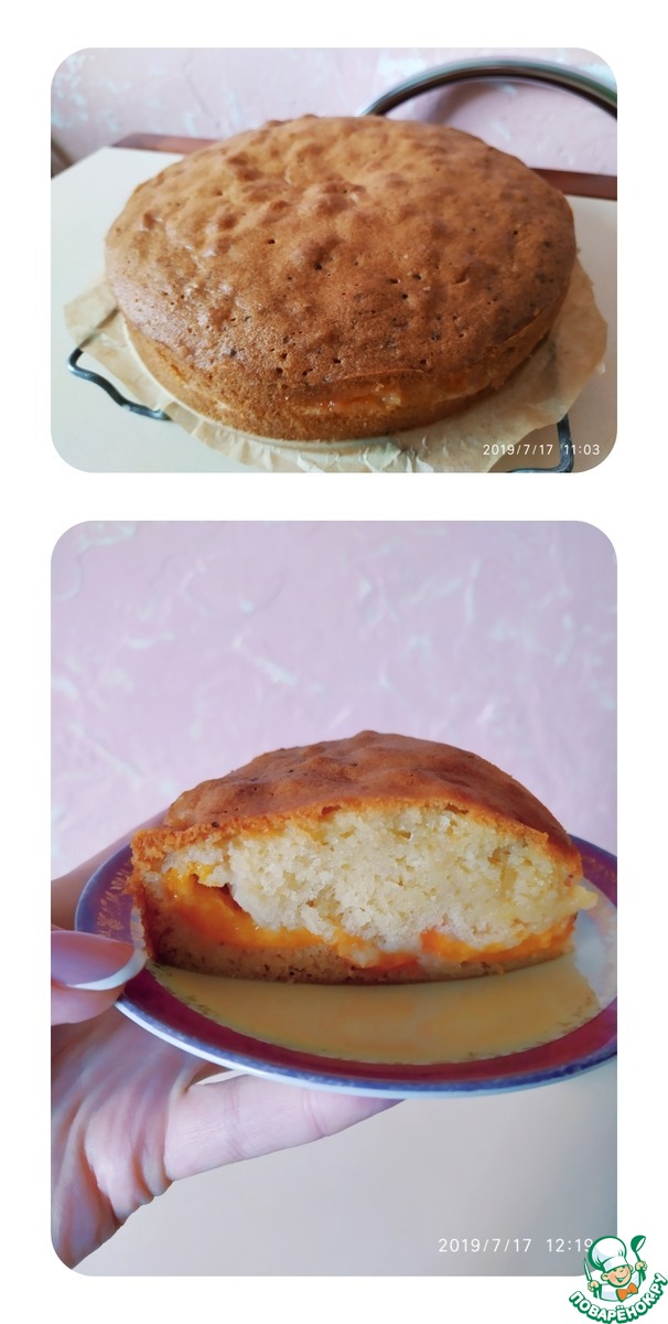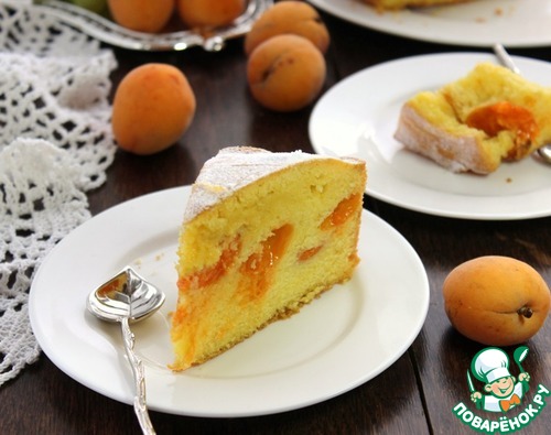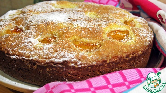 2 вариант. Выложить в смазанную маслом форму 1/2 теста, на тесто абрикосы и прикрыть другой 1/2 теста.