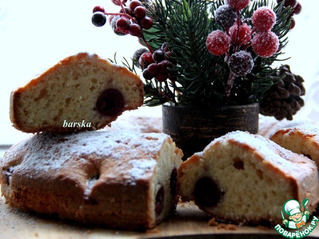 Готовый пирог посыпать сахарной пудрой и подавать к столу.