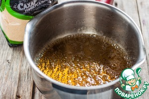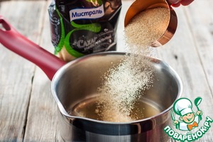 В кастрюльку влить воду и всыпать коричневый сахар. Он придаст нашему соусу-варенью красивый цвет, запах и вкус