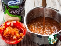 Теперь можно или пюрировать соус полностью, или отложить немного отдельно, а остальное измельчить в блендере или при помощи обычной толкушки для пюре. Я готовила последний вариант. Потом пюре и кусочки соединила. Если собираетесь хранить - еще раз доведите до кипения соус и разлейте в чистые баночки, ошпаренные кипятком. Автор утверждает, что хранится такая карамель не менее месяца в холодильнике.