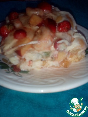 Из соленого заварного теста получаются воздушные коржи, а нежный заварной крем со сливочным вкусом их отлично дополняет. Фрукты дают сочность и делают торт еще более легким. Получается шикарный легкий, сочный и нежный тортик. Очень нам всем понравился, отличный вариант для семейного чаепития или большого застолья.