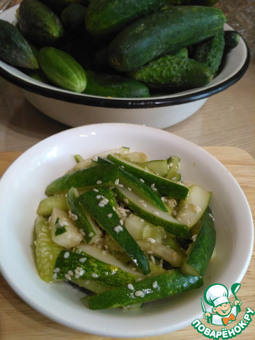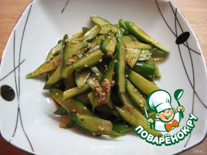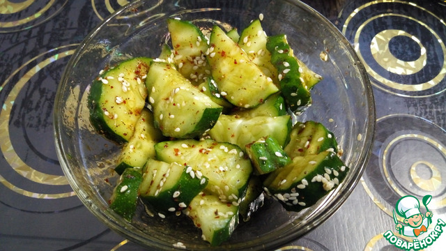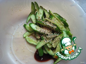 Добавляем соевый соус, кунжутное масло и кунжутное семя. Перемешиваем.