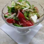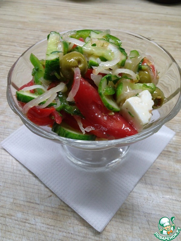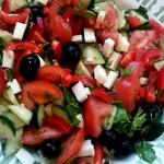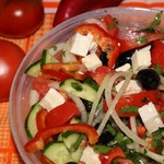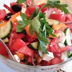 Предлагаю очень легкий, вкусный и полезный салат. Подобных рецептов много на сайте, если модераторы посчитают нужным удалить, возражать не буду. Такими салатиками нас кормили на отдыхе в Болгарии.